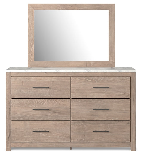 Signature Design by Ashley®Cool, clean and casually modern. This bedroom package’s light natural finish and replicated marble set the tone for your calming sanctuary. Large l...