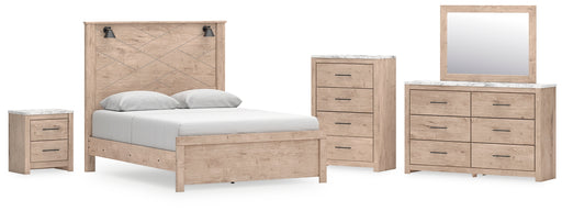 Signature Design by Ashley®Cool, clean and casually modern. This bedroom set’s light natural finish sets the tone for your calming sanctuary. Framed elements and cross-brace ...