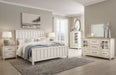 This bedroom set elevates the art of modern farmhouse design. Its two-tone aesthetic blends antiqued white and light grayish brown for added charm. Framed drawer fronts and dark rustic bar pulls lend a country feel. Conveying a feeling of relaxed comfort, this set is sure to carry you away to a dreamy time and place.
