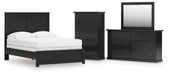 Details B138B52: Includes panel headboard/footboard and rails, Made with engineered wood (MDF/particleboard/plywood) and decorative laminate for the right balance of affordability and durability, Solid black finish, Decorative laminate replicates natural or man-made material surfaces with consistent color, pattern and texture, Foundation/box spring required, sold separately, Mattress available, sold separately, Assembly required, B138B50: Includes dresser and mirror, Made with engineered wood (MDF/particleboard/plywood) and decorative laminate for the right balance of affordability and durability , Solid black finish, Decorative laminate replicates natural or man-made material surfaces with consistent color, pattern and texture, Pewter-tone knobs, 6 smooth-gliding drawers, Mirror attaches to back of dresser; can also be mounted on wall horizontally or vertically, Minor assembly required, B138-46: Made of wood and engineered wood (MDF/particleboard), Antiqued black finish, Rubbed dark metal hardware, 5 smooth-gliding drawers, Includes tipover restraint device, Small Space Solution, Safety is a top priority, clothing storage units are designed to meet the most current standard for stability, ASTM F 2057 (ASTM International), Drawers extend out to accommodate maximum access to drawer interior while maintaining safety,