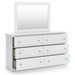 | Details | B139B42: Includes panel headboard/footboard and rails, Made with engineered wood (MDF/particleboard/plywood) and decorative laminate for the right balance of affordability and durability, Replicated solid white paint, Decorative laminate replicates natural or man-made material surfaces with consistent color, pattern and texture, Foundation/box spring required, sold separately, Mattress available, sold separately, Assembly required, B139B40: Includes dresser and mirror, Made of engineered wood (MDF/particleboard), Knobs with pewter-tone finish, Scalloped moulding, 6 smooth-operating drawers, Includes tipover restraint device, Mirror attaches to back of dresser; can also be mounted on wall horizontally or vertically, Safety is a top priority, clothing storage units are designed to meet the most current standard for stability, ASTM F 2057 (ASTM International), Drawers extend out to accommodate maximum access to drawer interior while maintaining safety, B139-91: Made of engineered wood (MDF/particleboard), Pewter-tone knobs, 1 smooth-operating drawer, 1 storage cubby, Scalloped moulding, Small Space Solution, | |