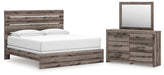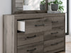 Details PCB2405B8: Includes panel headboard/footboard and rails, Made with engineered wood (MDF/particleboard/plywood) and decorative laminate for the right balance of affordability and durability , Weathered gray finish over replicated oak grain, Decorative laminate replicates natural or man-made material surfaces with consistent color, pattern and texture, Foundation/box spring required, sold separately , Mattress available, sold separately, Minor assembly required, PCB2405B1: Includes dresser and mirror, Made with engineered wood (MDF/particleboard/plywood) and decorative laminate for the right balance of affordability and durability , Weathered gray finish over replicated oak grain, Decorative laminate replicates natural or man-made material surfaces with consistent color, pattern and texture, Large-scale dark colored handles, 6 smooth-gliding drawers, Drawer interiors are lined with a faux linen laminate for a clean, finished look , Safety is a top priority, clothing storage units are designed to meet the most current standard for stability, ASTM F 2057 (ASTM International), Drawers extend out to accommodate maximum access to drawer interior while maintaining safety, Mirror attaches to back of dresser; can also be mounted on wall horizontally or vertically , Minor assembly required,