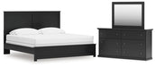 King Panel Bed with Mirrored Dresser