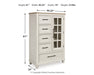 | Details | B683B6: Includes panel headboard, footboard, rails and slats, Made with hardwood solids, veneers and MDF substrates, Two-tone finish (antiqued white and light gray wood tone), Foundation/box spring required, sold separately, Mattress available, sold separately, Assembly required, B683B1: Includes dresser and mirror, Made with hardwood solids, veneers and MDF substrates, Two-tone finish (antiqued white and light gray wood tone), Dark bronze-tone bar pulls, 2 glass-front cabinets, each with single storage shelf, 5 drawers with fully finished interior, dovetail construction and heavy duty ball-bearing side glides (top drawer felt lined), Mirror attaches to back of dresser, B683-48: Made with hardwood solids, veneers and MDF substrates, Two-tone finish (antiqued white and light gray wood tone), Dark rustic bar pulls, Glass-front cabinet with 3 adjustable shelves, Door includes interchangeable wood veneer panel (ships with glass panel installed), 5 drawers with fully finished interior, dovetail construction and heavy duty ball-bearing side glides (top drawer felt lined), | |