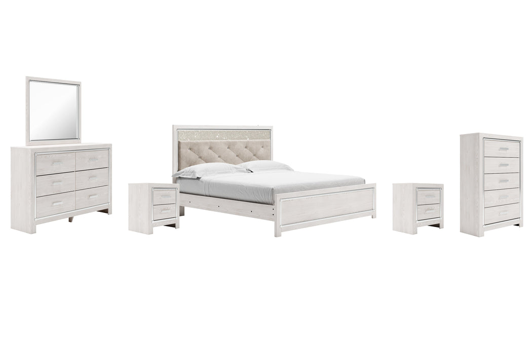 Altyra King Panel Bed with Mirrored Dresser, Chest and 2 Nightstands