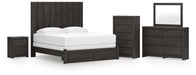 King Panel Storage Bed with Mirrored Dresser, Chest and Nightstand