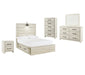 | Details | B192-46: Made of engineered wood (MDF/particleboard) and decorative laminate, Wispy white finish over replicated oak grain with authentic touch, Large-scale hardware with dark finish, 5 smooth-gliding drawers, Drawer interiors are lined with a faux linen laminate for a clean, finished look, Safety is a top priority, clothing storage units are designed to meet the most current standard for stability, ASTM F 2057 (ASTM International), Drawers extend out to accommodate maximum access to drawer interior while maintaining safety, B192-92: Made of engineered wood (MDF/particleboard) and decorative laminate, Wispy white finish over replicated oak grain with authentic touch, Large-scale hardware with dark finish, 2 smooth-gliding drawers, Drawers lined with faux linen laminate for finished aesthetic, 2 slim-profile USB charging stations, Power cord included; UL Listed, B192B1: Includes dresser with mirror, Made of engineered wood (MDF/particleboard) and decorative laminate, Wispy white finish over replicated oak grain with authentic touch, 6 smooth-gliding drawers, Drawer interiors are lined with a faux linen laminate for a clean, finished look, Large-scale hardware with dark finish, Mirror attaches to back of dresser, Assembly required, B192B17: Includes headboard, footboard, side storage, rail and slats, Made of engineered wood (MDF/particleboard) and decorative laminate, Wispy white finish over replicated oak grain with authentic touch, Large-scale hardware with dark finish, 2 decorative sconce lights, LED with 3 AA batteries, 2 smooth-gliding storage drawers, 2 storage cubbies, 2 slim-profile USB charging ports, Power cord included; UL-listed, Bed does not require additional foundation/box spring; accommodates most zero clearance adjustable bases with the addition of a bunkie board, Mattress available, sold separately, Assembly required, | |