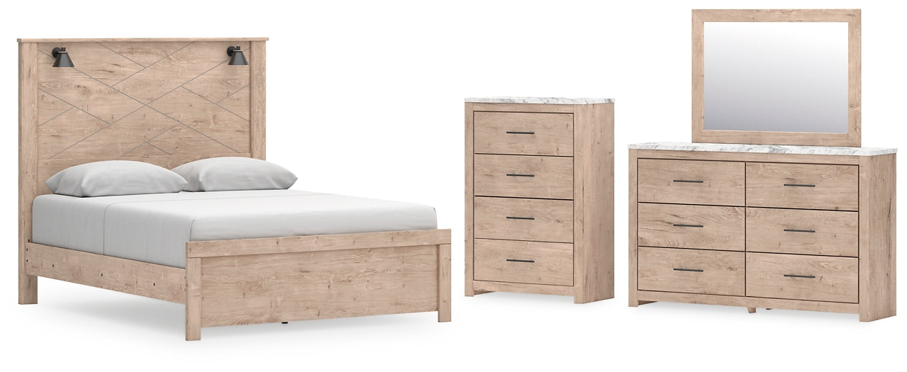 Senniberg Queen Panel Bed with Mirrored Dresser and Chest