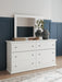 | Details | B139B43: Includes panel headboard/footboard and rails, Made with engineered wood (MDF/particleboard/plywood) and decorative laminate for the right balance of affordability and durability, Replicated solid white paint, Decorative laminate replicates natural or man-made material surfaces with consistent color, pattern and texture, Foundation/box spring required, sold separately, Mattress available, sold separately, Assembly required, B139B40: Includes dresser and mirror, Made of engineered wood (MDF/particleboard), Knobs with pewter-tone finish, Scalloped moulding, 6 smooth-operating drawers, Includes tipover restraint device, Mirror attaches to back of dresser; can also be mounted on wall horizontally or vertically, Safety is a top priority, clothing storage units are designed to meet the most current standard for stability, ASTM F 2057 (ASTM International), Drawers extend out to accommodate maximum access to drawer interior while maintaining safety, B139-91: Made of engineered wood (MDF/particleboard), Pewter-tone knobs, 1 smooth-operating drawer, 1 storage cubby, Scalloped moulding, Small Space Solution, | |