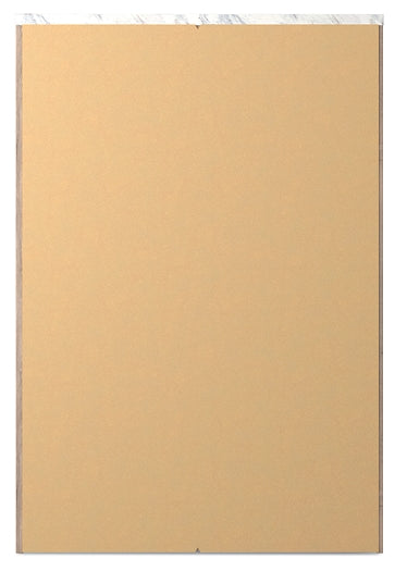Cool, clean and casually modern. This bedroom package’s light natural finish and faux Calcutta marble tops set the tone for your calming sanctuary. Large linear drawer pulls add dimension and authenticity, while the abstract headboard design brings a fresh look to the set.