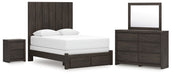 Queen Panel Storage Bed with Mirrored Dresser and Nightstand