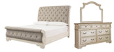 | Details | B743B4: Made of wood and engineered wood, with cast resin components, Includes headboard, footboard and rails, Distressed, chipped white finish, Polyester upholstery with foam cushioned and button tufting, Foundation/box spring required, sold separately, Mattress available, sold separately, Assembly required, Bed is compatible with an adjustable base, B743B1: Made of veneers, wood and engineered wood, with cast resin components, Antiqued two-tone finish, 7 smooth-gliding drawers with dovetail construction, Dark bronze-tone hardware, Mirror attaches to back of dresser, Assembly required, Includes tipover restraint device, | |