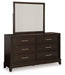 Neymorton Queen Upholstered Panel Bed with Mirrored Dresser