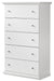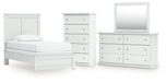 Details B139B41: Includes panel headboard/footboard and rails, Made with engineered wood (MDF/particleboard/plywood) and decorative laminate for the right balance of affordability and durability, Replicated solid white paint, Decorative laminate replicates natural or man-made material surfaces with consistent color, pattern and texture, Foundation/box spring required, sold separately, Mattress available, sold separately, Assembly required, B139B40: Includes dresser and mirror, Made of engineered wood (MDF/particleboard), Knobs with pewter-tone finish, Scalloped moulding, 6 smooth-operating drawers, Includes tipover restraint device, Mirror attaches to back of dresser; can also be mounted on wall horizontally or vertically, Safety is a top priority, clothing storage units are designed to meet the most current standard for stability, ASTM F 2057 (ASTM International), Drawers extend out to accommodate maximum access to drawer interior while maintaining safety, B139-46: Made of engineered wood (MDF/particleboard), Pewter-tone knobs, Scalloped moulding, 5 smooth-operating drawers, Small Space Solution, Includes tipover restraint device, Safety is a top priority, clothing storage units are designed to meet the most current standard for stability, ASTM F 2057 (ASTM International), Drawers extend out to accommodate maximum access to drawer interior while maintaining safety,