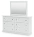 | Details | B139B41: Includes panel headboard/footboard and rails, Made with engineered wood (MDF/particleboard/plywood) and decorative laminate for the right balance of affordability and durability, Replicated solid white paint, Decorative laminate replicates natural or man-made material surfaces with consistent color, pattern and texture, Foundation/box spring required, sold separately, Mattress available, sold separately, Assembly required, B139B40: Includes dresser and mirror, Made of engineered wood (MDF/particleboard), Knobs with pewter-tone finish, Scalloped moulding, 6 smooth-operating drawers, Includes tipover restraint device, Mirror attaches to back of dresser; can also be mounted on wall horizontally or vertically, Safety is a top priority, clothing storage units are designed to meet the most current standard for stability, ASTM F 2057 (ASTM International), Drawers extend out to accommodate maximum access to drawer interior while maintaining safety, B139-91: Made of engineered wood (MDF/particleboard), Pewter-tone knobs, 1 smooth-operating drawer, 1 storage cubby, Scalloped moulding, Small Space Solution, | |