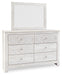 | Details | Dresser with mirror, Made of engineered wood (MDF/particleboard) and decorative laminate, Whitewash replicated worn through paint with authentic touch, Hardware features a worn-through painted effect, 6 smooth-gliding drawers with faux laminate lining, Mirror attaches to back of dresser, Assembly required | |