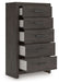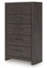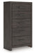 Designed with everyday style in mind, this chest of drawers is a simply chic approach to modern living. A dark charcoal finish blends black and brown undertones, creating a versatile look that effortlessly pairs with your existing pieces. And for must-have function, five smooth-gliding drawers store clothes and linens in charming fashion.