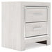 The epitome of fashion-forward design, this nightstand is a beautiful blend of comfort and luxury. Shiny chrome-tone accents, a pearlized finish and mosaic pulls bring a glam touch to the richly rustic appearance. With wireless and plug-in charging options, this bedside table adds style and modern conveniences to your restful retreat.