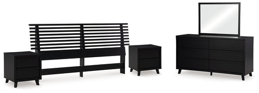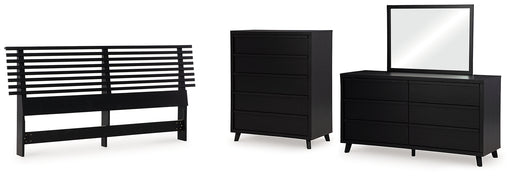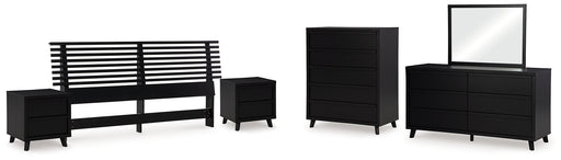 Signature Design by Ashley®Specifications Code Bed Color Black Type Master Bedroom Danziar King Slat Panel Bed 90''W x 94''D x 43''H Danziar Dresser and Mirror 63''W...