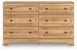 Country rustic. Vintage inspired. However you see it, you’re sure to be charmed by this dresser. Adorned with chic drawer knobs and a warm oak grain finish, it offers a relaxed mix of picturesque aesthetics. Its storage space gracefully welcomes clothes, linens and other bedroom necessities. With an air of easygoing elegance, this dresser lets you drift away to a simpler time and place.