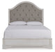 Traditional design. Casual appeal. You can have it all with this queen upholstered panel bed. A relaxed chipped white finish and an inset headboard cushion with classic button tufting give the distinctive piece an allure all its own. And the low-profile side rails and footboard are on trend for today’s laid-back lifestyles.