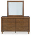 | Details | B615B7: Includes upholstered panel headboard and footboard , Solid wood frame, Due to the use of natural wood materials, some variations may occur , Frame with medium brown wood tone finish, Polyester upholstery, Tapered legs, Foundation/box spring required, sold separately , Mattress available, sold separately, Assembly required, B615B1: Includes dresser and mirror, Made with hardwood solids, mango wood veneer and MDF substrates, Medium brown wood-tone finish, 6 drawers with fully finished interior, dovetail construction and heavy duty ball-bearing side glides, Round tapered legs, Mirror attaches to back of dresser, B615-46: Made with hardwood solids, mango wood veneer and MDF substrates, Medium brown wood-tone finish, 5 drawers with fully finished interior, dovetail construction and heavy duty ball-bearing side glides, Round tapered legs, B615-92: Made with hardwood solids, mango wood veneer and MDF substrates, Medium brown wood-tone finish, 2 drawers with fully finished interior, dovetail construction and heavy duty ball-bearing side glides, Round tapered legs, 110V power supply with USB-A and USB-C charging ports, Power cord included; UL Listed, | |