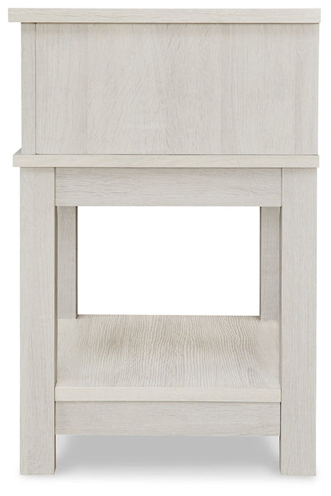 Clean lines and a white stained color add light to your room with this nightstand. The drawer and open shelf allow for versatile storage or display options, making this nightstand a functional favorite.