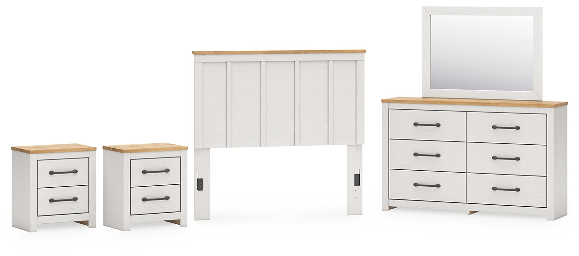 Linnocreek Full Panel Headboard with Mirrored Dresser and 2 Nightstands