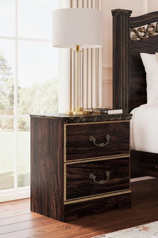| Details | Includes poster headboard, footboard and rails, Made of engineered wood (MDF/particleboard/plywood) and decorative laminate for the right balance of affordability and durability, Glossy reddish-brown finish over replicated cherry grain, paired with faux stone, Decorative laminate replicates natural or man-made material surfaces with consistent color, pattern and texture, Foundation/box spring required, sold separately , Mattress available, sold separately, Minor assembly required | |