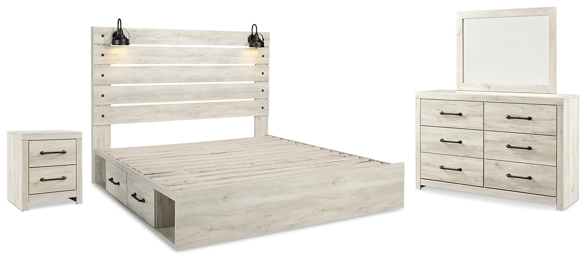 Cambeck King Panel Bed with 2 Storage Drawers with Mirrored Dresser and Nightstand