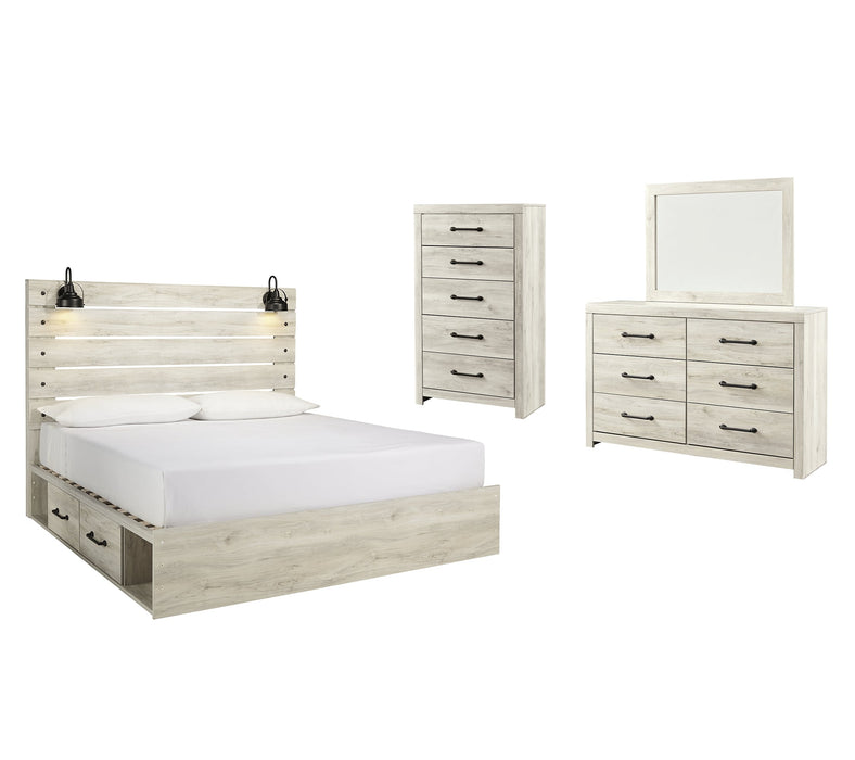 Cambeck King Panel Bed with 2 Storage Drawers with Mirrored Dresser, Chest and Nightstand
