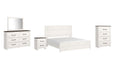 | Details | B1190B3: Includes headboard, footboard and rails, Made of engineered wood (MDF/particleboard) and decorative laminate, White rustic finish with replicated cedar grain, Foundation/box spring required, sold separately, Mattress not included, sold separately, Assembly required, Bed is compatible with an adjustable base, B1190B1: Includes dresser with mirror, Made of engineered wood (MDF/particleboard) and decorative laminate, White rustic finish with replicated cedar grain, Rustic gray planked replicated oak grain with authentic touch, 6 smooth-gliding drawers with faux linen lining, Large scale dark colored handles, Mirror attaches to back of dresser, Assembly required, B1190-44: Made of engineered wood (MDF/particleboard), and decorative laminate, White rustic finish with replicated cedar grain, Rustic gray planked replicated oak grain with authentic touch, 4 smooth-gliding drawers with faux linen lining, Large scale dark colored handles, Safety is a top priority, clothing storage units are designed to meet the most current standard for stability, ASTM F 2057 (ASTM International), Drawers extend out to accommodate maximum access to drawer interior while maintaining safety, Assembly required, B1190-92: Made of engineered wood (MDF/particleboard), White rustic finish with replicated cedar grain, Rustic gray planked replicated oak grain with authentic touch, 2 smooth-gliding drawers with faux linen lining, Large scale dark colored handles, Assembly required, | |