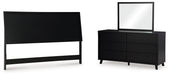 Details B1013-58: Made with engineered wood (MDF/particleboard/plywood) and decorative laminate for the right balance of affordability and durability, Matte black finish with subtle replicated wood grain, Decorative laminate replicates natural or man-made material surfaces with consistent color, pattern and texture, ¼" bolts (not included) are needed to attach headboard to your existing bed frame, Minor assembly required, B1013B11: Includes dresser and mirror, Made with engineered wood (MDF/particleboard/plywood) and decorative laminate for the right balance of affordability and durability, Matte black finish with subtle replicated wood grain, Decorative laminate replicates natural or man-made material surfaces with consistent color, pattern and texture, 6 smooth-gliding drawers, Drawer interiors are lined with a faux linen laminate for a clean, finished look, Integrated drawer pulls, Framed front and pilasters, Mirror attaches to back of dresser; can also be mounted on wall horizontally or vertically, Safety is a top priority, clothing storage units are designed to meet the most current standard for stability, ASTM F 2057 (ASTM International), Drawers extend out to accommodate maximum access to drawer interior while maintaining safety, Minor assembly required,