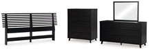 | Details | B1013-158: Made with engineered wood (MDF/particleboard/plywood) and decorative laminate for the right balance of affordability and durability, Matte black finish with subtle replicated wood grain, Decorative laminate replicates natural or man-made material surfaces with consistent color, pattern and texture, ¼" bolts (not included) are needed to attach headboard to your existing bed frame, Minor assembly required, B1013B11: Includes dresser and mirror, Made with engineered wood (MDF/particleboard/plywood) and decorative laminate for the right balance of affordability and durability, Matte black finish with subtle replicated wood grain, Decorative laminate replicates natural or man-made material surfaces with consistent color, pattern and texture, 6 smooth-gliding drawers, Drawer interiors are lined with a faux linen laminate for a clean, finished look, Integrated drawer pulls, Framed front and pilasters, Mirror attaches to back of dresser; can also be mounted on wall horizontally or vertically, Safety is a top priority, clothing storage units are designed to meet the most current standard for stability, ASTM F 2057 (ASTM International), Drawers extend out to accommodate maximum access to drawer interior while maintaining safety, Minor assembly required, B1013-345: Made with engineered wood (MDF/particleboard/plywood) and decorative laminate for the right balance of affordability and durability, Matte black finish with subtle replicated wood grain, Decorative laminate replicates natural or man-made material surfaces with consistent color, pattern and texture, 5 smooth-gliding drawers, Drawer interiors are lined with a faux linen laminate for a clean, finished look, Integrated drawer pulls, Framed front and pilasters, Safety is a top priority, clothing storage units are designed to meet the most current standard for stability, ASTM F 2057 (ASTM International), Drawers extend out to accommodate maximum access to drawer interior while maintaining safety, Minor assembly required, | |