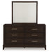 | Details | B618B4: Includes upholstered panel headboard, panel rails and panel footboard with slats, Made with hardwood solids, engineered wood and MDF substrates, Grayish brown wood-tone finish, Floating inset upholstered panel in polyester Next-Gen Nuvella fabric surrounded by LED backlight, Next-Gen Nuvella™ is a performance fabric that is soft, easy to clean, stain-resistant and durable, Clean fabric with mild soap and water, let air dry; for stubborn stains, use a solution of 4 oz. bleach to 28 oz. water, Light switch is located on each side of headboard and includes dual USB charging port (USB-A and USB-C), Power cord included; UL Listed, Foundation/box spring required, sold separately, Mattress available, sold separately, Assembly required, B618B1: Includes dresser and mirror, Made with hardwood solids, engineered wood and MDF substrates, Grayish brown wood-tone finish, Metal bar pulls with satin nickel-tone finish, 6 smooth-gliding drawers with dovetail construction and heavy duty ball-bearing side glides (top drawers felt lined), Mirror attaches to back of dresser, B618-46: Made with hardwood solids, engineered wood and MDF substrates, Grayish brown wood-tone finish, Metal bar pulls with satin nickel-tone finish, 5 smooth-gliding drawers with dovetail construction and heavy duty ball-bearing side glides (top drawers felt lined), B618-92: Made with hardwood solids, engineered wood and MDF substrates, Grayish brown wood-tone finish, Metal bar pulls with satin nickel-tone finish, 2 smooth-gliding drawers with dovetail construction and heavy duty ball-bearing side glides (top drawers felt lined), | |