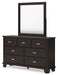 | Details | B441B6: Includes panel headboard, footboard, rails and slats, Made with hardwood solids, engineered wood veneer and MDF substrates, Dark brown finish, Floating panel headboard, Picture frame footboard, Foundation/box spring required, sold separately , Mattress available, sold separately, Assembly required, B441B1: Includes dresser and mirror, Made with hardwood solids, engineered wood veneer and MDF substrates, Dark brown finish, Metal bar pulls with bright nickel-tone finish, 7 smooth-gliding drawers with dovetail construction and metal center guides, Drawer interiors are lined with a wood grain laminate for a clean, finished look, Top moulding on dresser, Mirror attaches to back of dresser, | |