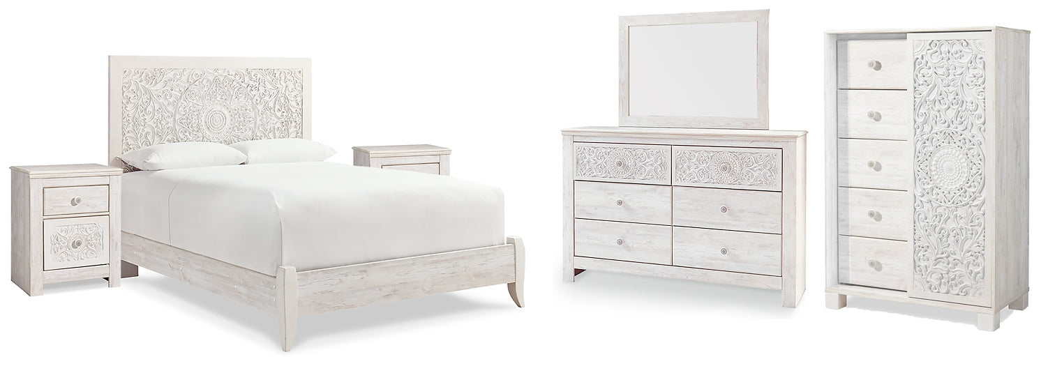 Paxberry Queen Panel Bed with Mirrored Dresser, Chest and 2 Nightstands