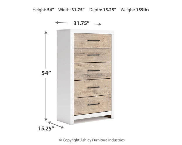 Relaxed yet striking, this bedroom package brings casual beauty and function to your dream destination. A delightful two-tone treatment blends a fresh, replicated oak grain with a matte white finish that's easy to love. The set’s simplicity lends a contemporary touch that suits your bedroom's style to a T.