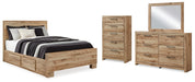 Hyanna Queen Panel Bed with Storage with Mirrored Dresser and Chest