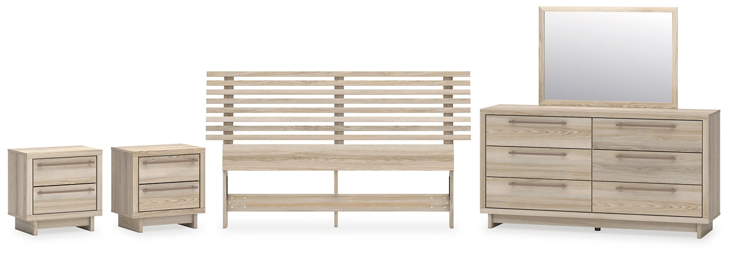 Hasbrick Queen Panel Headboard with Mirrored Dresser and 2 Nightstands