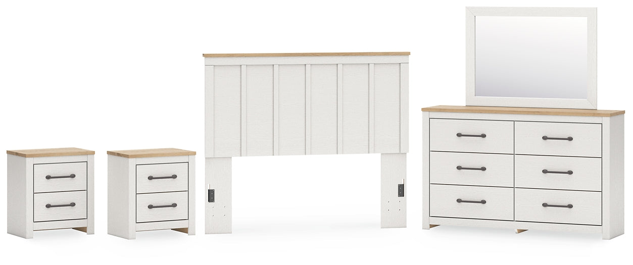 Create a serene countryside retreat with this bedroom package. The two-tone design effortlessly adds farmhouse style, while framed drawer fronts with pewter-tone handles enhance its charming appeal. Looking for furniture that offers a peaceful escape from your daily routine? This set is just what you need.