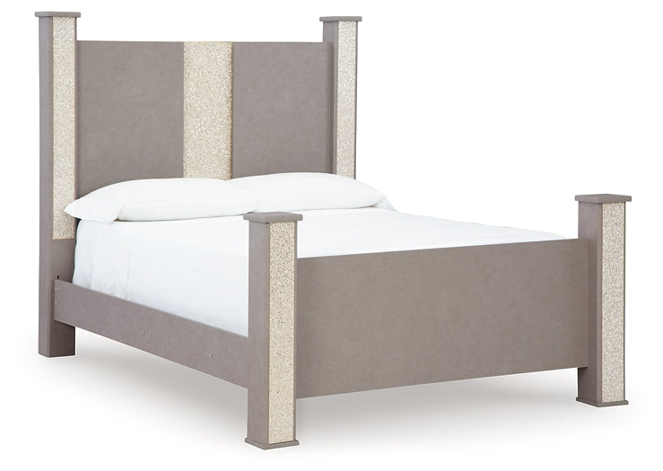 Surancha Queen Poster Bed with Mirrored Dresser and 2 Nightstands