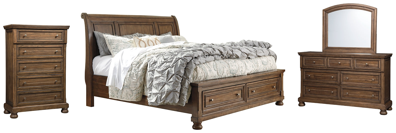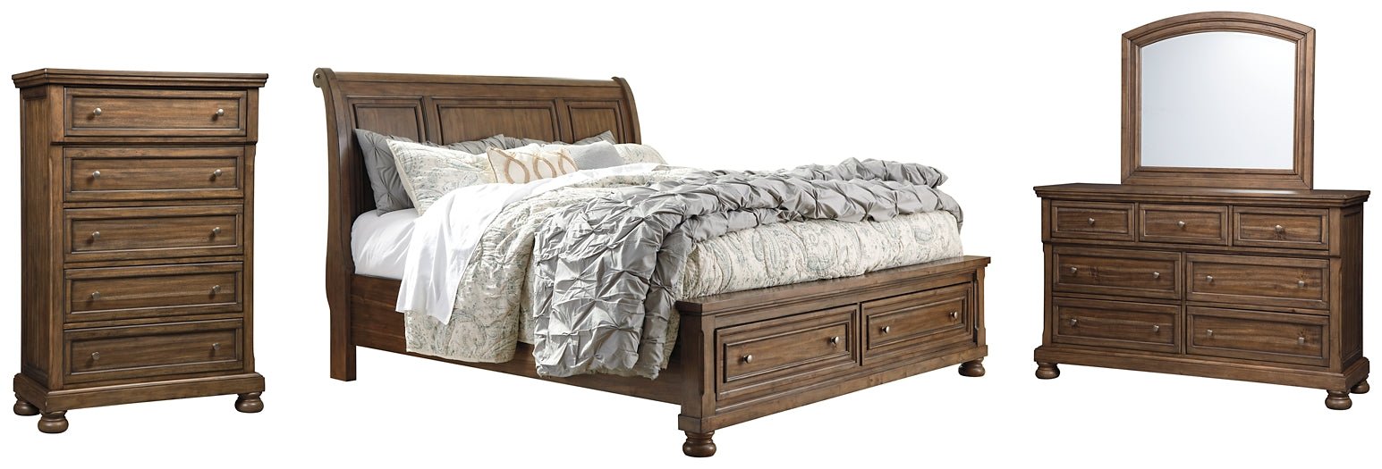 | Details | Includes headboard, storage footboard, rails, dresser with mirror and chest of drawers, Made of wood, engineered wood and veneers, Aged brass-tone knob hardware, Footboard has 2 smooth-operating drawers with dovetail construction, Mirror attaches to back of dresser, Dresser has 7 smooth-gliding drawers with dovetail construction (pull-out tray and top drawers felt lined), Chest of drawers with 5 smooth-gliding drawers with dovetail construction (top drawer felt lined), Includes tipover restraint device, Assembly required, Foundation/box spring required, sold separately, Mattress available, sold separately | |