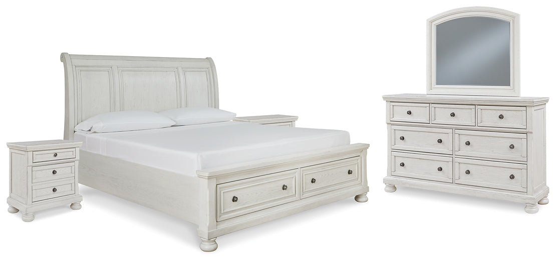 Robbinsdale Queen Sleigh Bed with Storage with Mirrored Dresser and 2 Nightstands