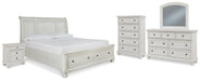 Robbinsdale Queen Sleigh Bed with Storage with Mirrored Dresser, Chest and Nightstand