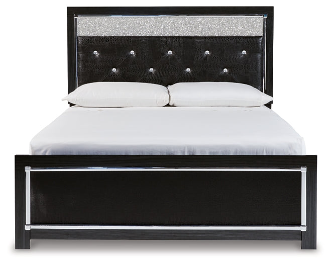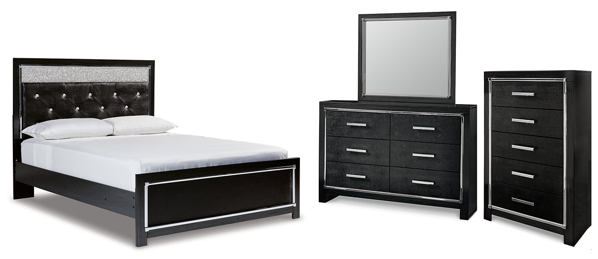 Kaydell Queen Upholstered Panel Bed with Mirrored Dresser and Chest