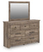 Classically chic. This dresser with mirror marries traditional design with modern accents. Its deep brown finish recalls the authentic touch of hickory grain for a rich look and feel. Assorted drawers neatly store your essentials in charming fashion. Sincere in its styling, this piece sets the scene for a warm, welcoming vibe in your bedroom.