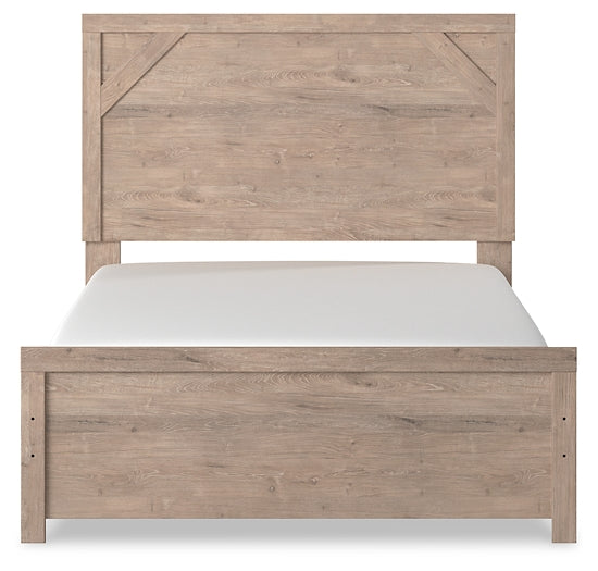 Cool, clean and casually modern. This queen panel bed’s light natural finish sets the tone for your calming sanctuary. Framed elements and cross-brace accents add dimension and authenticity to the bed’s simply stunning profile.