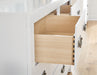 | Details | B427B2: Includes twin panel headboard, footboard, rails and slats, Made with hardwood solids, okoume veneer and MDF substrates, White finish, Foundation/box spring required, sold separately, Mattress available, sold separately, Assembly required, B427B1: Includes dresser and mirror, Made with hardwood solids, okoume veneer and MDF substrates, White finish, 6 drawers with dovetail construction and metal center guides, Hardware with dark finish, Drawer interiors are lined with a wood grain laminate for a clean, finished look, Mirror attaches to back of dresser, B427-92: Made with hardwood solids, okoume veneer and MDF substrates, White finish, 2 drawers with dovetail construction and metal center guides, Hardware with dark finish, Drawer interiors are lined with a clean wood grain laminate for a clean, finished look, | |