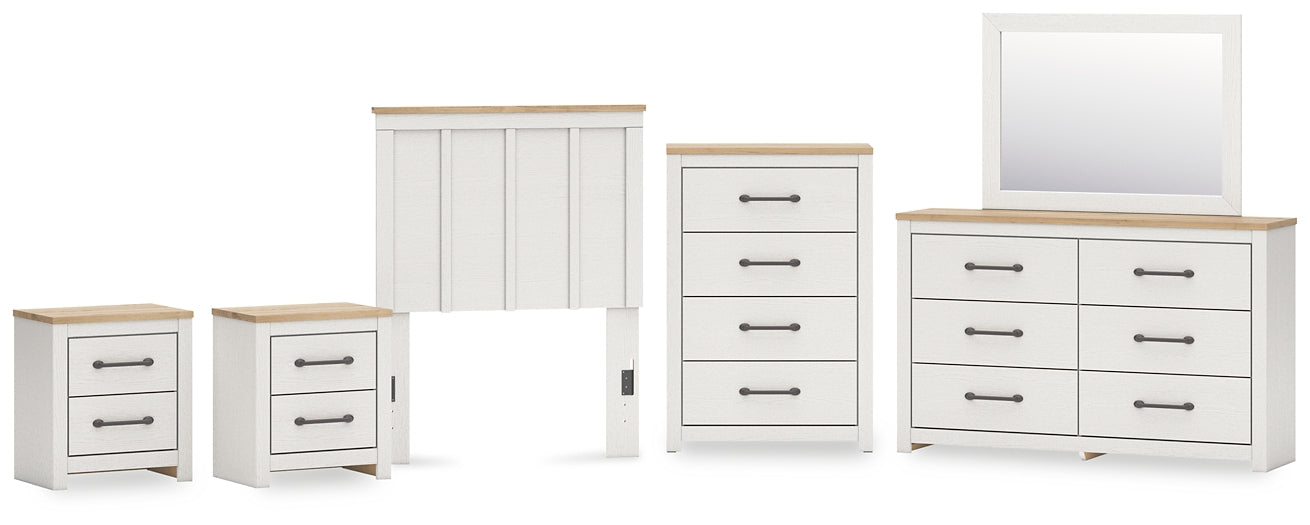 Linnocreek Twin Panel Headboard with Mirrored Dresser, Chest and 2 Nightstands